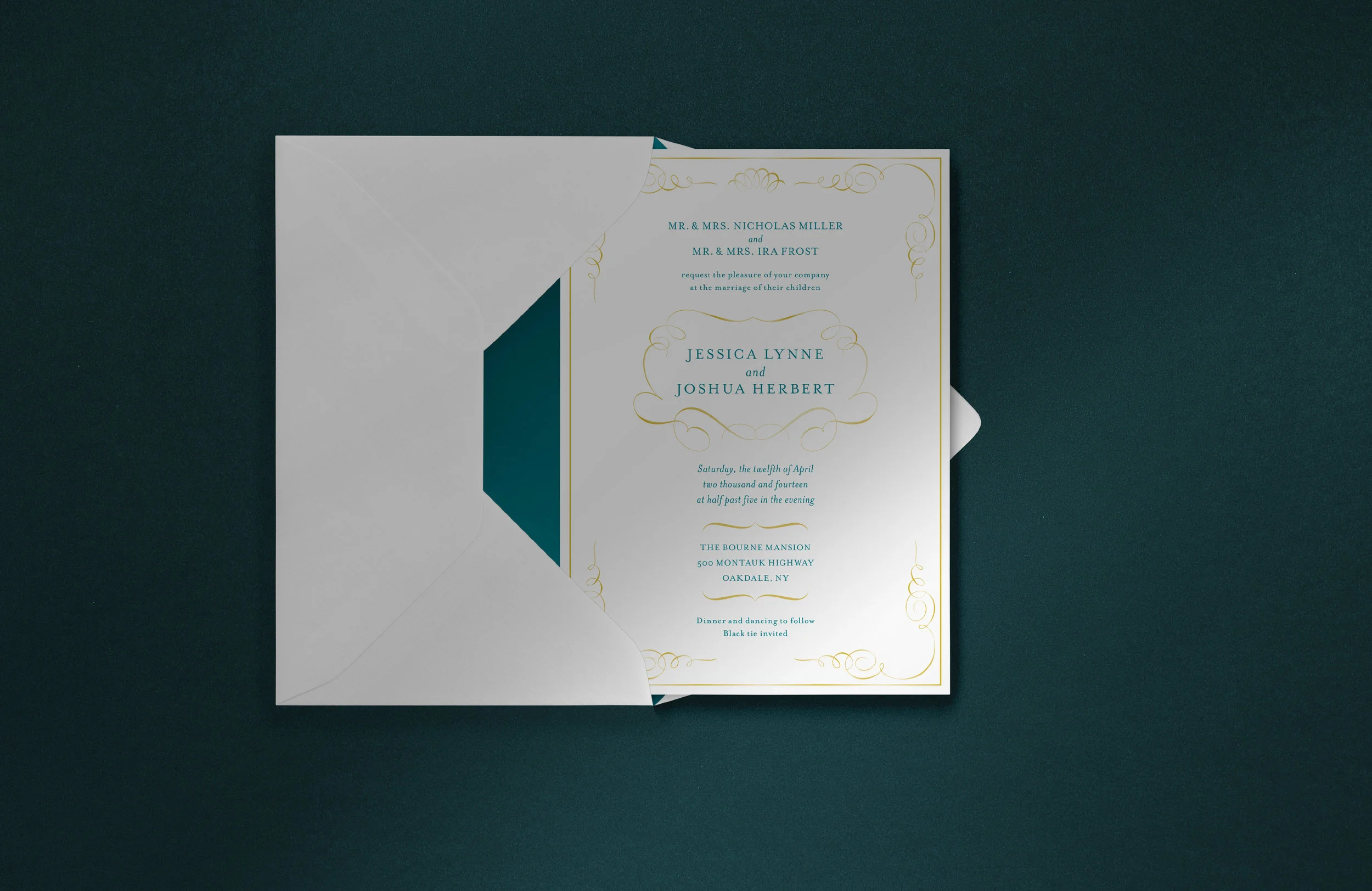 With foil filigree and letterpress printing, the wedding suite was a beautiful preview of the event to come.